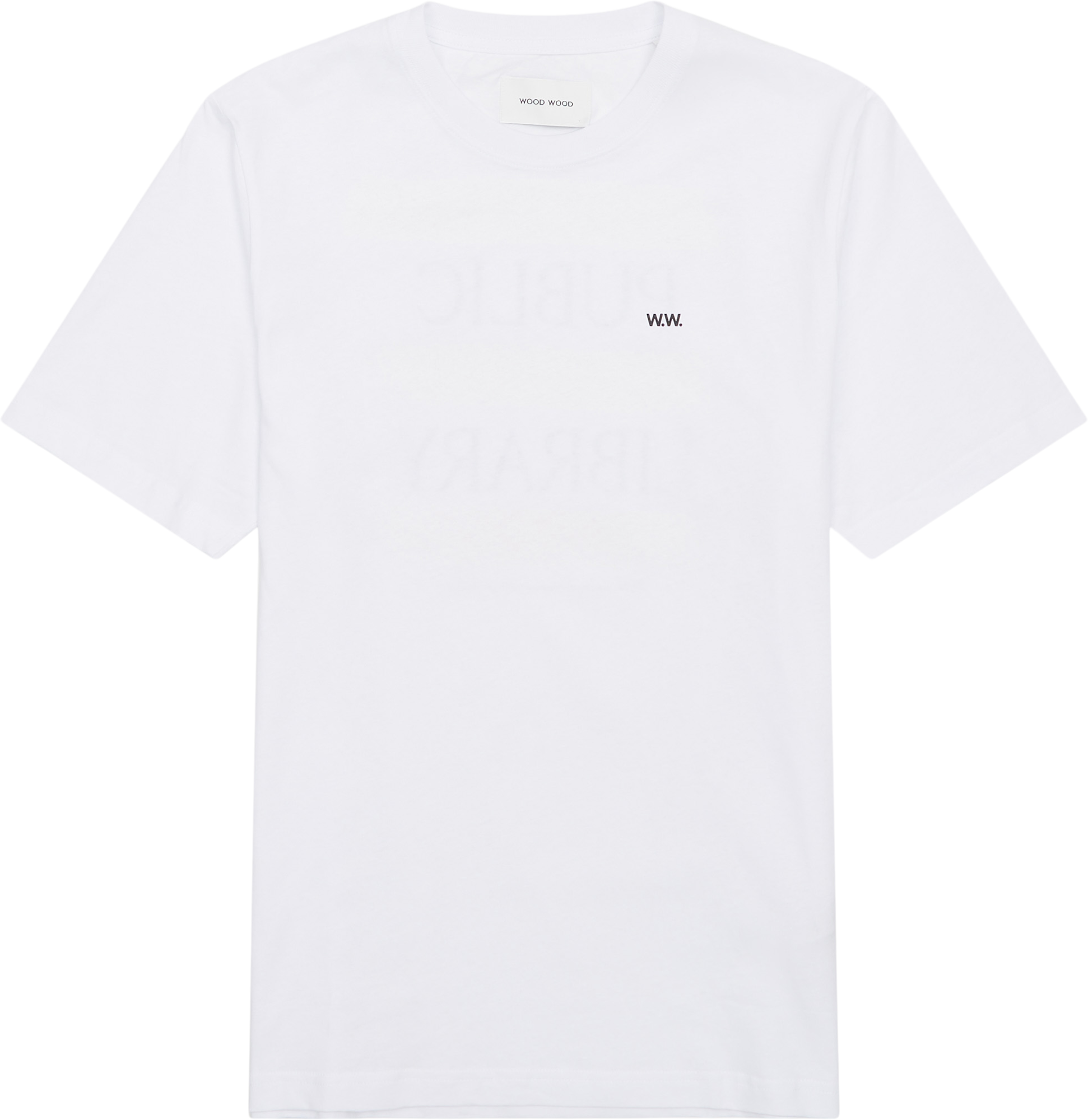 Her får du en rå Wood Wood T‑shirt i hvid med cool grafik bagpå samt en afslappet pasform, der tilfører kant til din garderobe. Perfekt til hverdagsbrug.