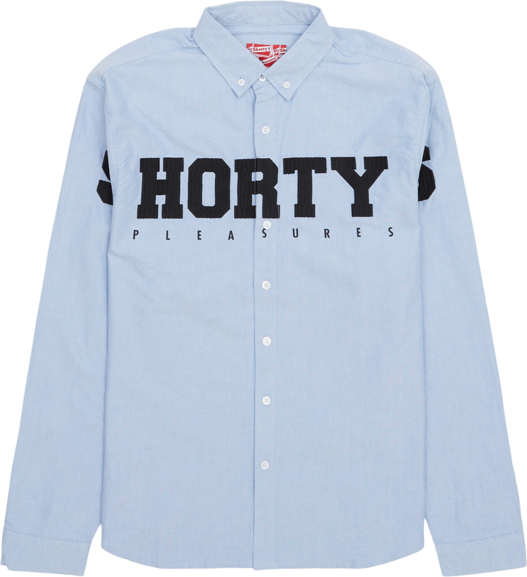 Opdater din garderobe med vores KINGPIN OXFORD BUTTON DOWN skjorte fra PLEASURES. Den har et super cool broderet tryk og en fed silhuet. Perfekt til hverdagsbrug med et par baggy bukser.
