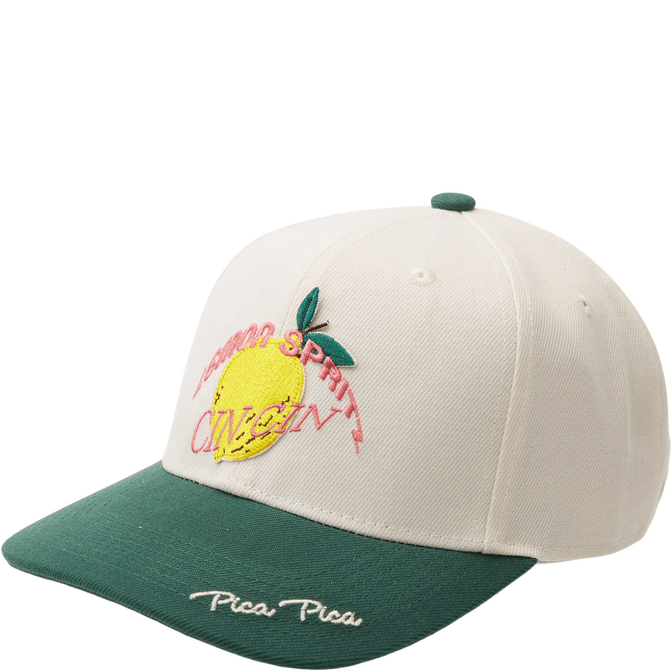 Opfrisk dit outfit med PICA PICA's LEMON SPRITZ PP3160 kasket. Kasketten er prydet med et levende broderet citrondesign.